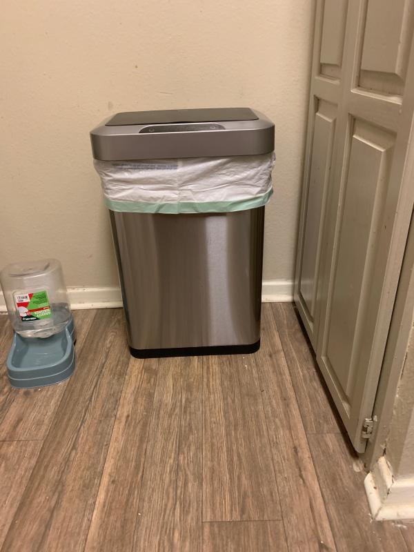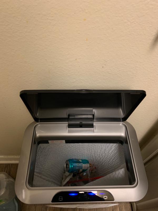I recently received the Horizon Motion Sensor trash can. This stainless steel trash can look great in my kitchen. It's not too big or too small, so it fits perfectly in the corner. I like the touch buttons that open and close the lid slot. My only concern is that it takes six AA batteries. I'm not sure if I bought the wrong ones are not. The lid is supposed to have this wave your hand feature, that's what makes it touch free. For some reason it doesn't work. I'm going to try different batteries to see if that helps. Other than that I really like it. It also has an on and off switch beneath the lid .