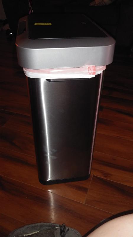 I love this garbage can!! Hands full, no big deal, wave your hand, your knee over the sensor and it will open for you!! Kids always forget to close the lid, no need to worry anymore. Lid stays open for just long enough to throw something in, give it a second and it closes on its on. Very easy to set up, simply install batteries and good to go. Batteries were the only down fall I could find with this can. In today's rechargeable world, rechargeable would be awesome! Great product either way.