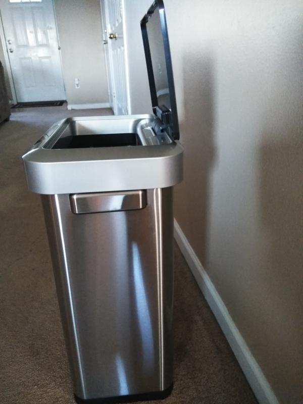 I love this trash can! The brushed stainless steel surface looks fantastic. I adore the motion sensor. The lid of my previous can was always smudged and messy. Not a problem with this can. It looks so nice in my kitchen!