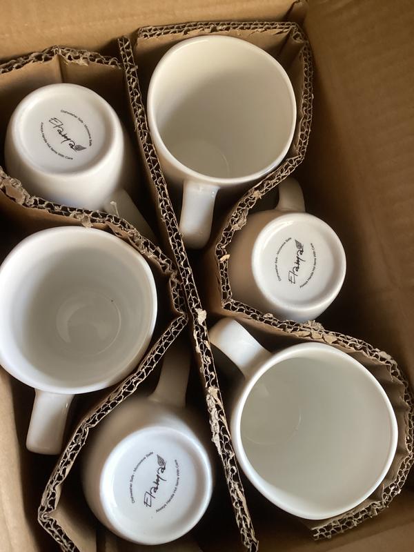 This 12 pcs set of coffee mugs were triple packed! Everything arrived in one piece and they are very nice. Sturdy, thick-walled cups, sure to keep your hot beverage nice and warm.