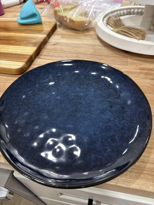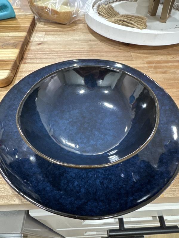 Love the royal blue color which looks better in person. Dishes are heavy so need to have a good handle.