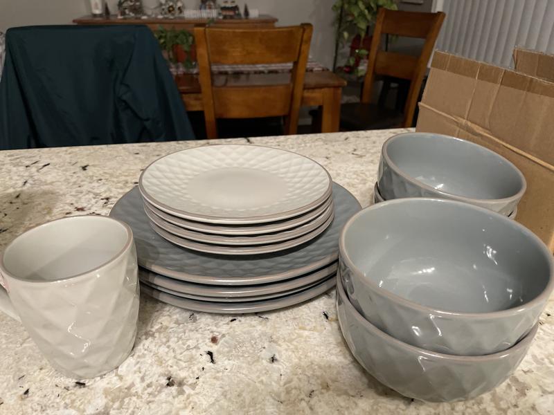I absolutely love my new dishes! I've been using them for a few weeks, so I can confidently give a 5-star review. They are high quality, sturdy dishes. The love the subtle diamond design. It's unique and eye-catching but still casual enough for daily use. I searched for new dishes for a long time and find anything else like these. They are also well- made. I'm very picky with my purchases. If I'm spending my money, I want to the product to be in perfect condition. I inspected each plate, bowl, and mug and all of them looked great, with no chips or bubbles. I was worried that they would scratch easily I haven't had any problems with that, even after using my knife a little too hard several times. I would definitely buy these again.