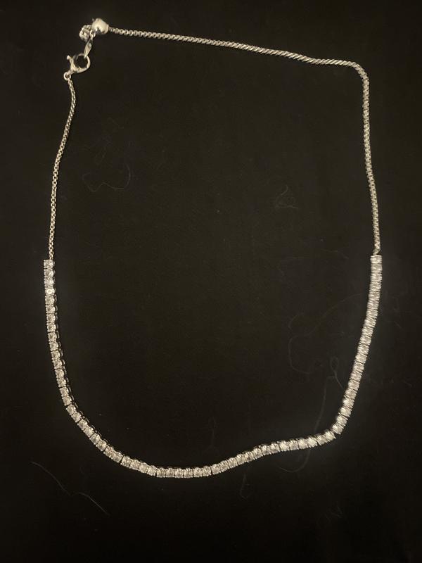 So close, yet not quite right. The necklace portions you can see in the picture is exactly as you would want it to be. It’s beautiful! But…. The clasp is placed on the right side of the neck, instead of in the back. Feels and looks like it is off center, even when the Czs line up perfectly in front. If you put the clasp in the back it looks really wrong. So very beautiful but odd clasp placement.