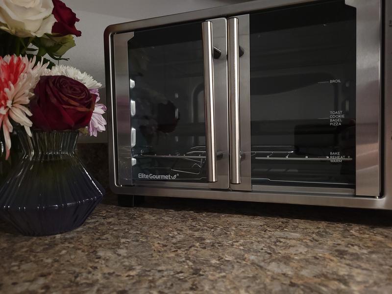 I'm so impressed with my new Elite Gourmet Double toaster oven. It's so nice looking and easy-to-use with the French door opening. I can use a larger or even a round pan in this oven. Which really makes it so versatile. This oven can cook a 12" pizza because of it's rounded back. I love the way it heats up quickly and evenly. I will enjoy it for years to come.