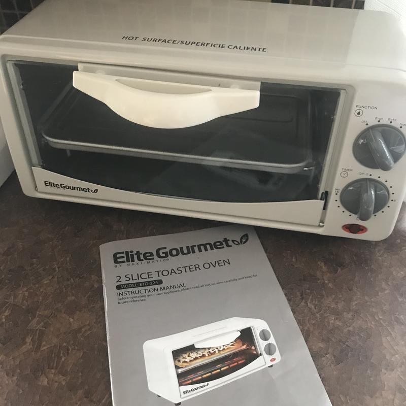 This is a handy little toaster oven. Nothing fancy just your basic model. Perfect for a small kitchen space or when you don't want to use the big oven for a single portion. Just be safe!! It gets VERY hot on the outside!!! Will melt anything close by.
