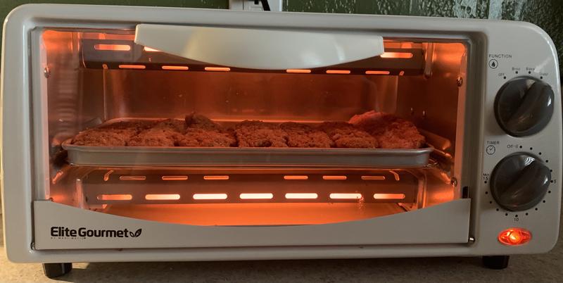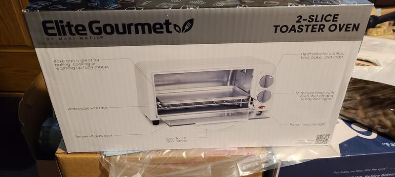 I got this elite cuisine 2 slice toaster oven with broiler and timer one week ago and I would like to say that is great for small spaces, so you can put it whatever you want. It is a small toaster oven for some chicken nuggets and pizza rolls for my kids. Also, it heats up quickly. it has three functions which are broil, bake, toast which is great but the timer goes only for 15 minutes. It is easy to clean because the wire rack and bake pan are removable.