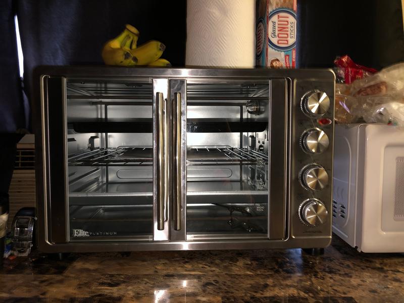 I love love this oven!!! When I got it I couldn't wait to try it out I immediately started using it with a rotisserie chicken I love that I can do that with this oven. The chicken cane out perfect nice and juicy and flavorful. I cooked pizza also and the pizza came out perfect nice and crunchy and delicious. The oven is nice and roomy with racks so you can make 2 different things at once. I love the look of it and the double doors I just live everything about this oven. I highly highly recommend it.