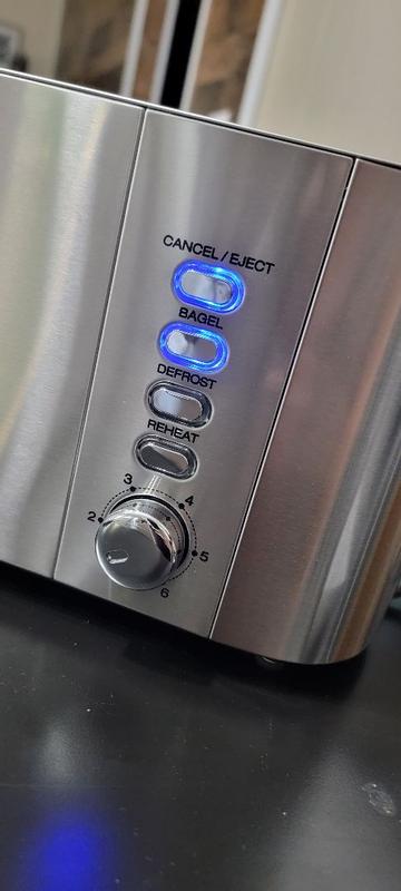 Toaster very attractive, stainless steel, has a great selection for Toasting, wide enough for Bagles, and great selection for our needs, defrost, reheat. Do recommend.