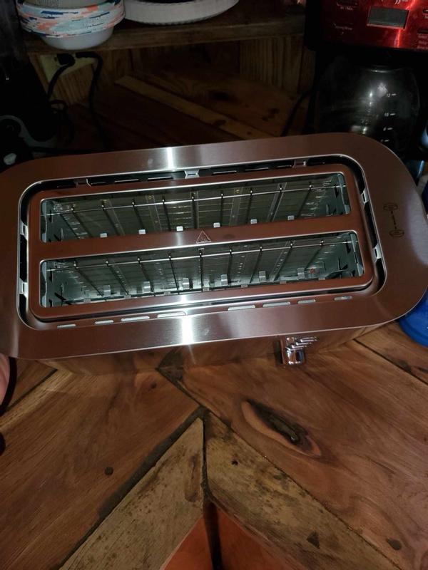Love my new toaster. I can actual put my pumpernickel bread in it and toast the whole piece. Should have bought one of these years ago. Outside of toaster does get hot so keep away from wall when using.
