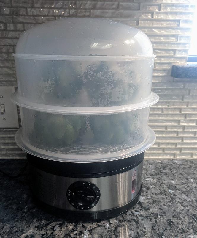 Who has thumbs and eating healthier, this guy! This food steamer is great for fish and vegetables and easy to clean up. It is very easy to put it away and if you are looking for a steamer that can fit a lot, this is a great steamer consider.