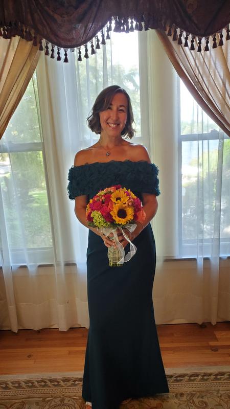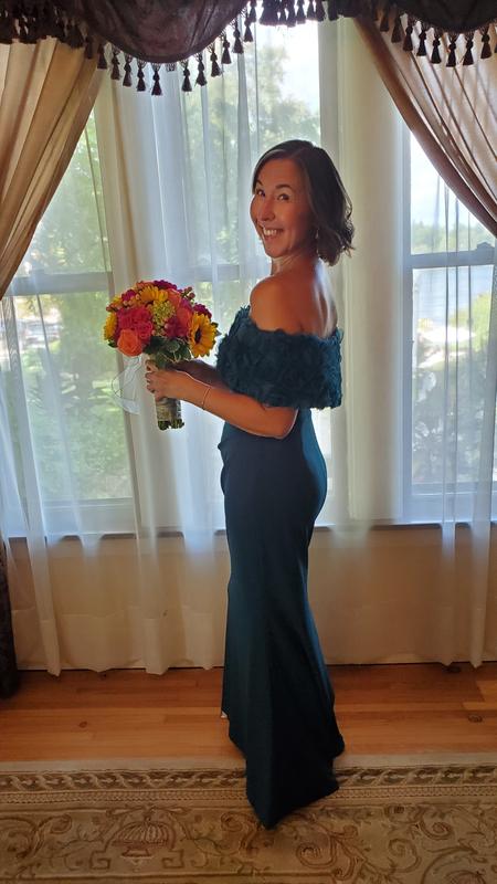 I purchased this gown at the last minute. I I looked high and low for a gown for my niece’s wedding. After endless dress shopping I finally found this gown that was a petite size. It was just hanging on a T stand all by itself, the size was right, However, I never bothered to try it on until 3 days before the wedding, The gown was not a petite length. By the end of the night there was no longer a hem. My heel kept getting caught in the back of the gown. I have never received so many comments as I did that evening . Needless to say it was a big hit, I never received so many compliments as i did that nite. I definitely gave it 5 star 🌟🌟🌟🌟🌟review . My only regret is that the gown was the identical color as the bridesmaids. (O0PS) I suggest trying on the gown with the heel size of your shoes you attend to wear. Definitely recommend this gown.