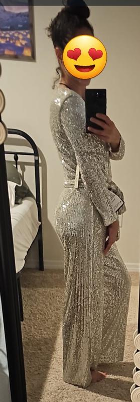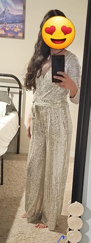 Petite Sequin Wrap Front Long Sleeve Jumpsuit