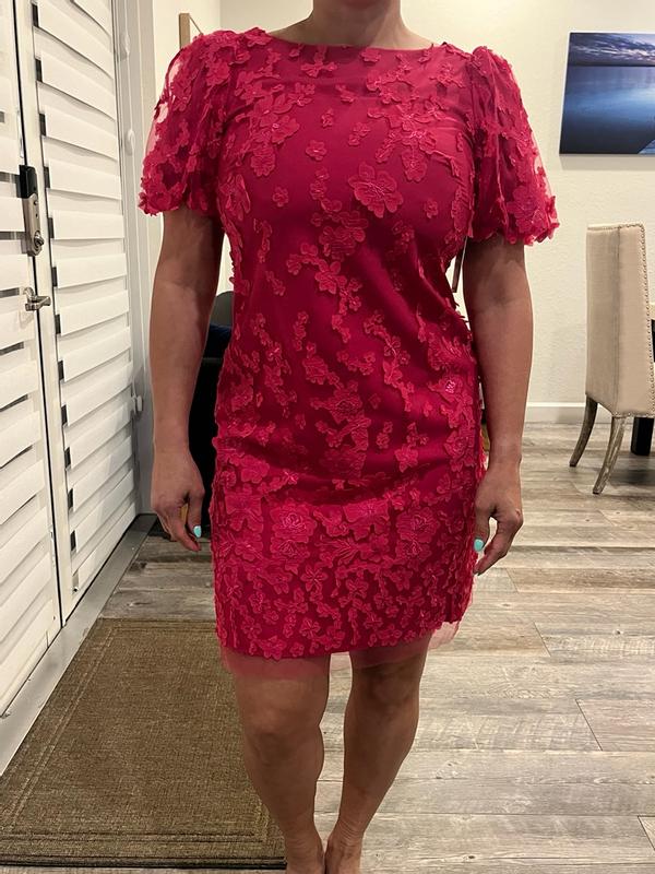 Women's 3D Floral-Appliquéd Puff-Sleeve Dress