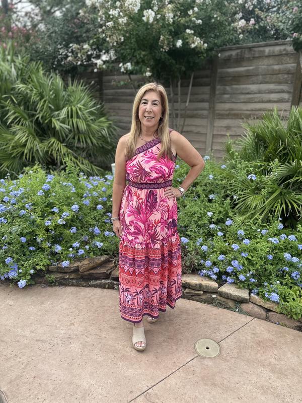 Women's Mixed-Print One-Shoulder Tiered Midi Dress