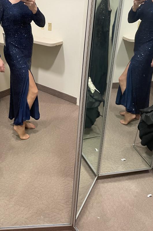 It fits like a glove and is gorgeous. The slit is just high enough to add a sense of allure.
