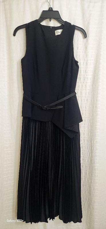 Not your "basic" little black dress. So sophisticated, classic and elegant. The style is flattering and looks great. The peplum detail, pleated skirt and slim belt really add style.