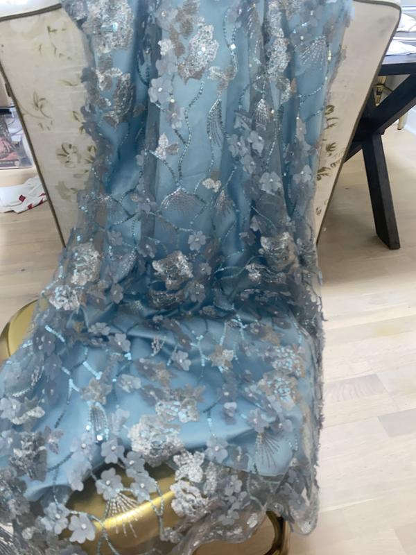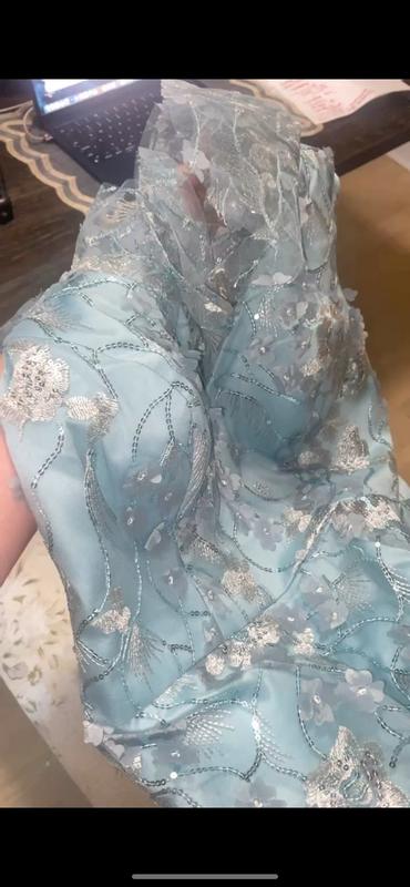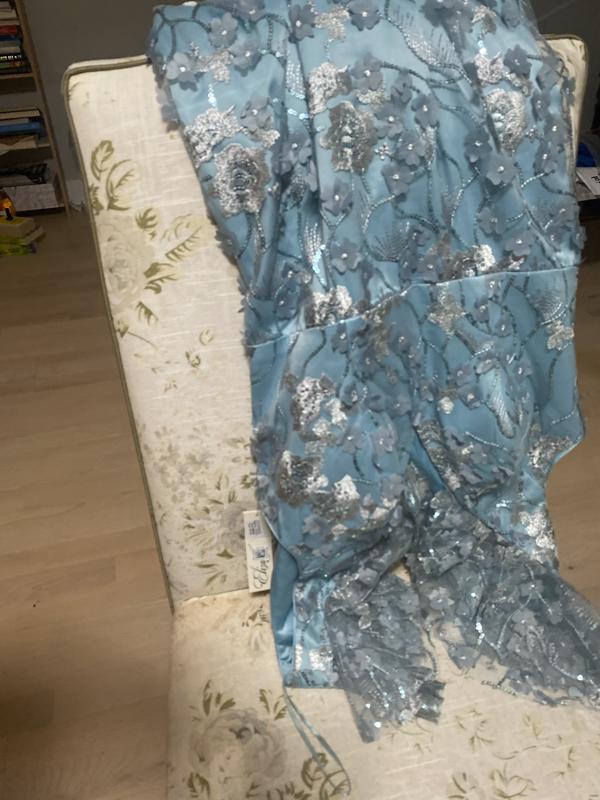 I love this dress and the color for a summertime wedding! I thought the v front was a little deep so when I had it hemmed a seamstress filled in the area with the 3D flowers. The price was great considering the gowns I was trying on were 700-1000 range.