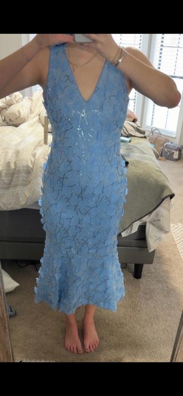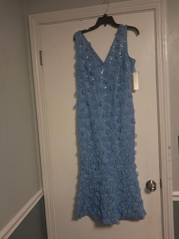 This is a beautiful dress fits perfectly maybe a little big in the Best area. The fabric is very soft and the 3-D look at the flowers is really cool. Easy to care for. I love the color.