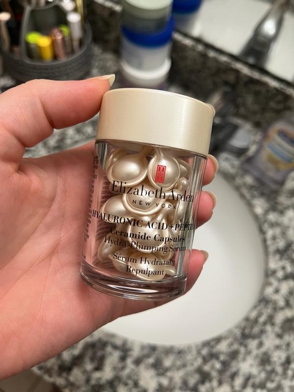 ⭐️⭐️⭐️⭐️⭐️ Elizabeth Arden Hyaluronic Acid + Peptides Ceramide Capsules Hydra-Plumping Serum I’ve been using these ceramide capsules for a few weeks now, and I’m genuinely impressed. Each capsule is perfectly portioned, which I love because it keeps the serum fresh and makes application super easy—no waste at all. The texture is silky and lightweight, absorbs quickly, and doesn’t feel greasy or heavy on my skin. After applying, my skin immediately feels deeply hydrated, smoother, and plumper. Over time, I’ve noticed my skin looks healthier and more radiant, and fine lines appear softer, especially when I use it at night. The combination of hyaluronic acid, peptides, and ceramides really helps lock in moisture and strengthen the skin barrier. It works great both morning and night, and layers well under moisturizer and makeup. ✨ Pros: • Convenient single-dose capsules • Deep hydration and plumping effect • Lightweight, non-sticky formula • Skin looks smoother and more radiant Overall, this serum feels like a luxury skincare treatment at home. I would absolutely recommend it to anyone with dry, dehydrated, or aging skin looking for long-lasting hydration and visible results.