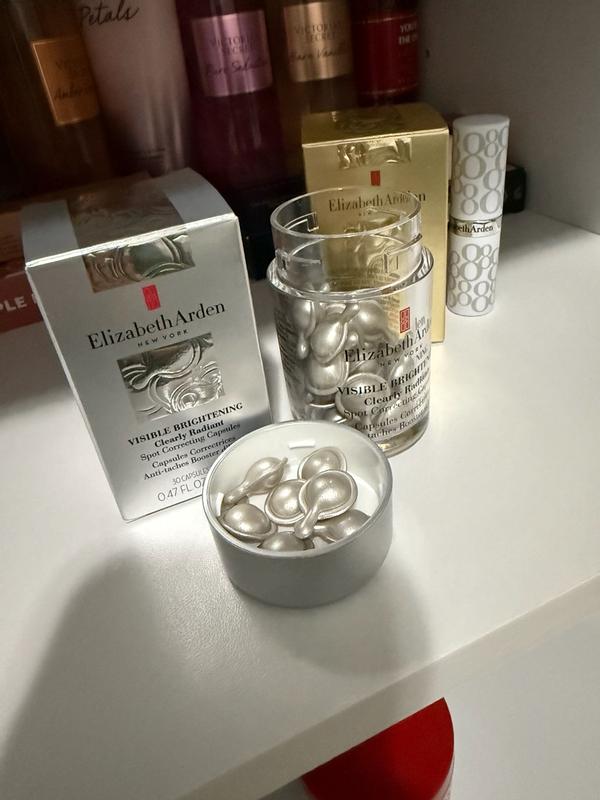 These silver capsules, housed in a very elegant jar, have significantly brightened my skin and reduced dark spots. The encapsulated Vitamin C is impressively effective, and discovering its powerful benefits was a pleasant surprise. I've used the Elizabeth Arden Visible Brightening Clearly Radiant Spot Correcting Capsules and I'm very happy with the results. My skin is noticeably brighter, and I've seen a reduction in dark spots and hyperpigmentation. The capsules are very easy to use, and I appreciate the precise dosage they provide, ensuring I get just the right amount of product each time. The moisturizing and texture-improving effects are also a big plus, leaving my skin smoother and more radiant. My nearly 40-year-old skin can't tolerate layering skincare products before foundation – I've tried countless different products/routines. Recently, I've been using this product, waiting 3-4 minutes for the serum to absorb. The liquid texture absorbs easily, then I apply tinted sunscreen followed by a thin layer of foundation, and it works perfectly for me. My facial skin doesn't usually react well to vitamin C, but in this formula, it doesn't cause irritation. Brightening and evening skin tone: My skin looks more even-toned and radiant, which has boosted my confidence. Reducing dark spots and hyperpigmentation: The capsules effectively targeted my dark spots, making them less noticeable. Moisturizing and improving skin texture: My skin feels more hydrated and smoother, contributing to an overall healthy appearance. Preserving ingredient potency: The capsule form ensures the ingredients retain their potency, which I believe contributes to the product's effectiveness. Did you know that the vitamin C in these capsules is 178 times more potent than traditional vitamin C formulas? This enhanced effectiveness is what makes the product so effective in targeting and reducing dark spots, so it's well worth the money.