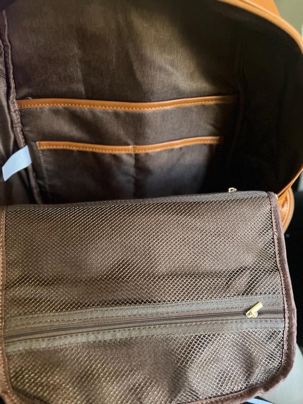 When I opened the box the timing was perfect if you need a bag that holds everything this is definitely for you it's beautiful and feels very durable I load it up right away holds all my sons stuff including laptop and tablet with room to spare extremely happy with this bag