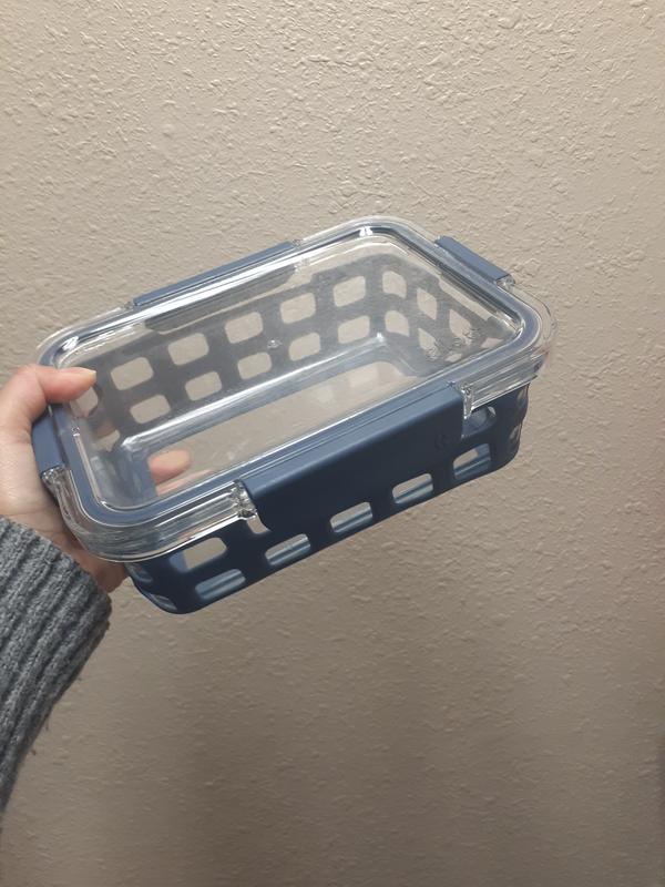 These silicon wrapped storage containers close perfectly and securely. I have yet to break one! The wrap not only protects the dish it keeps my clumsy hands from dropping it!