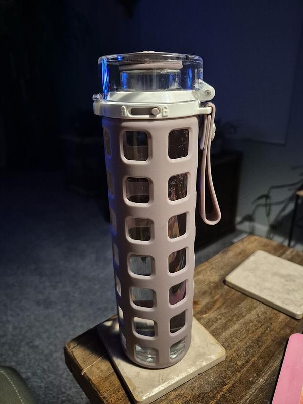 I love this glass water bottle with the silicone sleeve. No plastic touches my lips!!! I had thought it would feel like drinking from a mason jar--because there is not straw, but that's not the case.