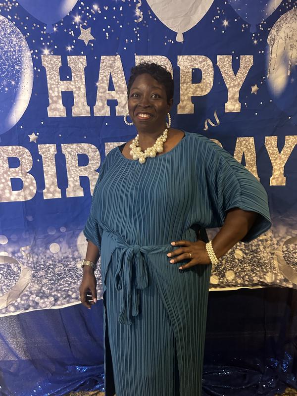 I purchased this dress in blue for a late afternoon birthday celebration. I added chunky pearl jewelry. I love that the dress can be dressed up or worn for work. The material feels great and the shape is flattering. I ordered a 22/24, but lost some weight. The tie feature allowed me to still wear the dress. For context, I’m 5’6” 236 lbs.