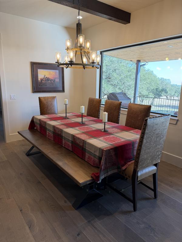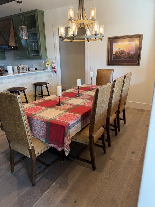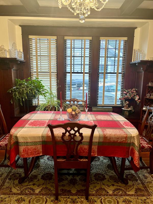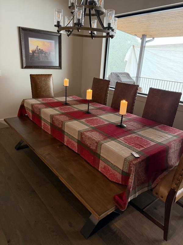 This is the worst table cloth I have ever purchased. First, it needed extensive ironing and it was like. cheap rag. A dishcloth from a dime store would be as good. I messed up the packaging so I did not send it back but should have anyway. Someone else had. It came stuffed in the package as if someone didn't like it and didn't bother to fold it. A huge disappointment.