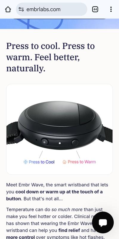 I’ve been using my Embr Wave for over a year now and it makes such a big difference in managing hot flashes. I found it also minimize anxiety. Love it!