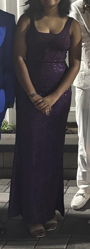 This dress fit me perfectly and I really loved it, but the glitter was unmanageable. From the moment I put it on, my face, arms, and chest were covered in purple glitter. It shed onto the floor every time I moved. Other than that, amazing dress! I am usually a size 2-4 and I fit into an XS.