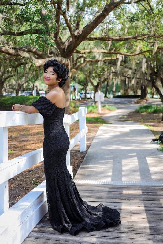 Juniors' Lace Off-The-Shoulder Gown