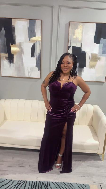 Emerald SundaeJuniors' Notch-Front Stretch-Velvet Gown