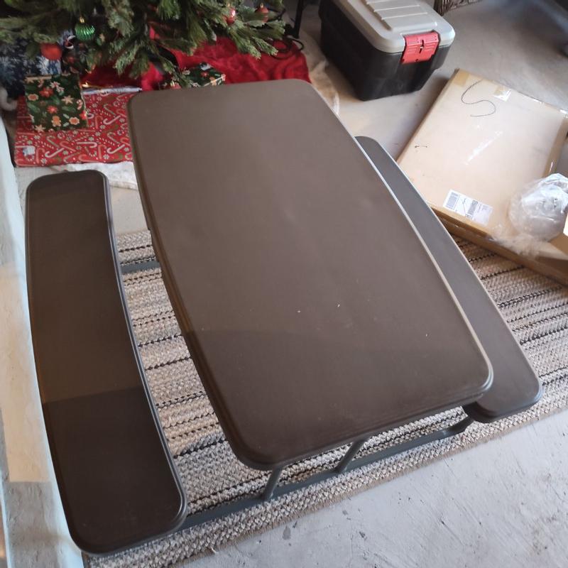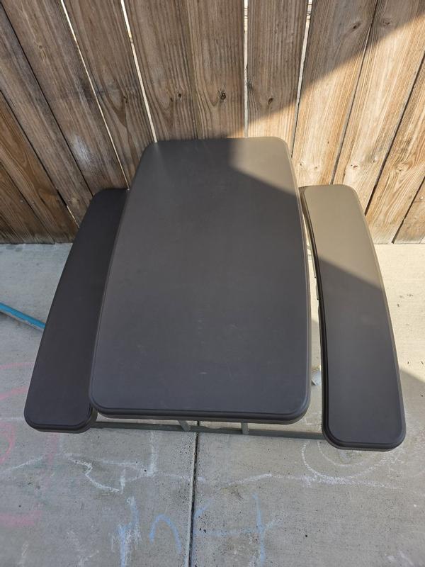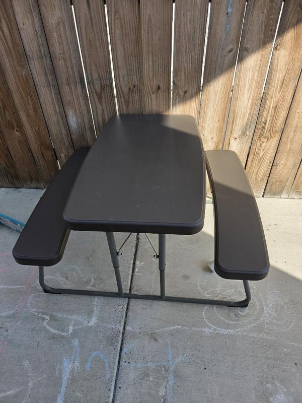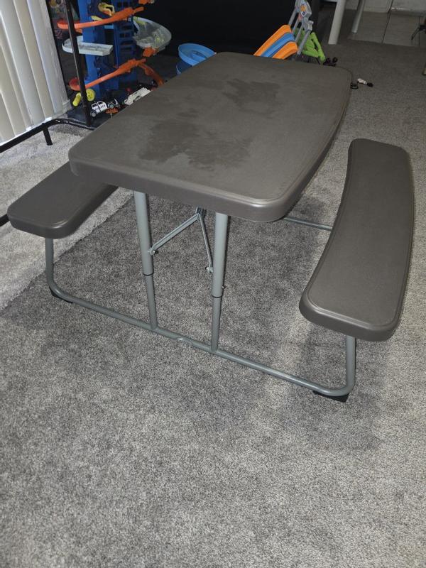 A dependable and practical choice for outdoor activities catering to children aged 5 and under (though my niece is 4 and nephew 6), this set is crafted with commercial-grade materials, ensuring indisputable durability and safety for its young users. Key Features: 1. **Foldable Design:** The table and benches are equipped with a folding feature, primarily for ease of transport and storage, making them ideal for various outdoor settings such as parks, playgrounds, or backyard gatherings (after use, fold and store under the bed). 2. **Robust Construction:** Fashioned from high-quality plastic, the set is engineered to endure frequent use and outdoor conditions, guaranteeing long-lasting resilience. 3. **Child-Centric:** Tailored with dimensions and design conducive to children's needs, including rounded edges for enhanced safety, it provides a comfortable and secure seating and dining area for young ones (they engage in various activities, from playtime to meals, on this set). 4. **Versatile Functionality:** Adaptable for a myriad of activities such as picnics, arts and crafts, snacks, and playtime, offering versatility to meet various needs. 5. **Elegant Design:** The contemporary yet timeless grey hue and simple design seamlessly complement the majority of outdoor environments. Additional Features: - Sturdy and able to support a practical weight for children (not suitable for adult use to prevent damage). - Suitable for both indoor and outdoor use (I primarily use it indoors). - Comfortable seating with a smooth plastic texture and no noticeable odor. - Arrives pre-assembled; simply unpack and use. - Easily customizable with spray paint for color changes. - Recommended for storage in a closet or outdoors. - Safe for everyday use by children, accommodating up to four kids. - Easy to clean and resistant to stains. Disadvantages: - Made of plastic material. - Considerably heavy. - May cause scratches on hardwood floors when moved.