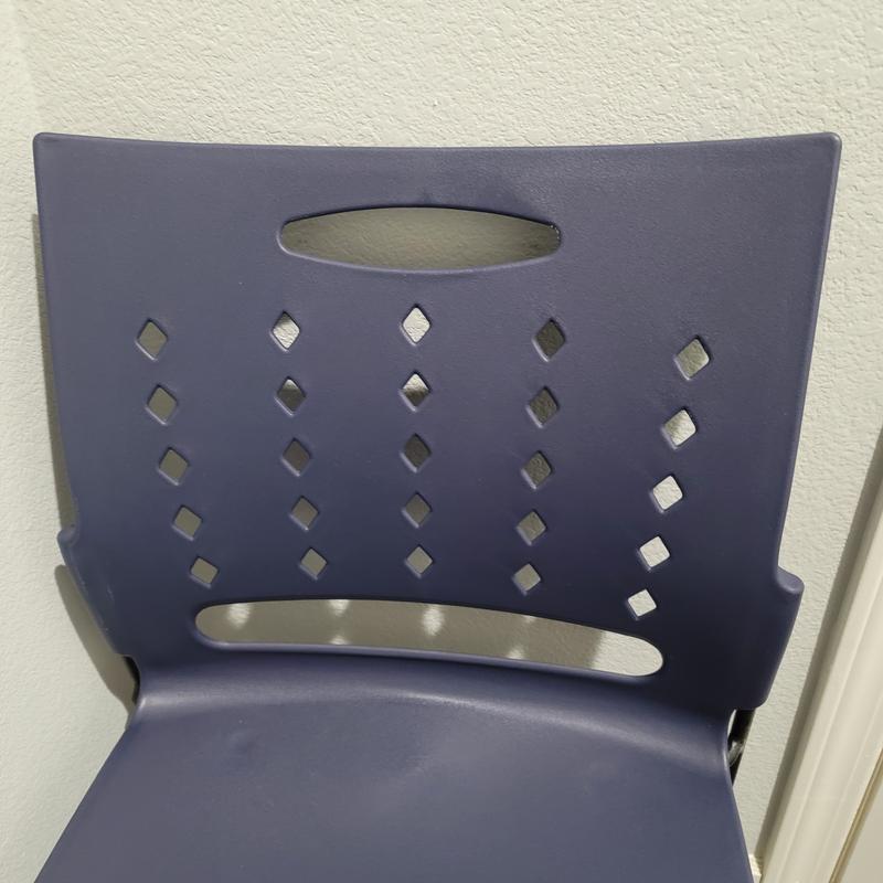 The Hercules series Gray Sled Base Stack Chair with Air Vent back is a stylish and functional option for seating. It's a simple design that holds up to 881 lbs. The sleek hard plastic material makes it easy for cleaning and stacking. However, there are times when I feel like I'm sliding off from the front where there is a slight slope especially with certain clothing. This chair color is versatile and works with almost any decor.