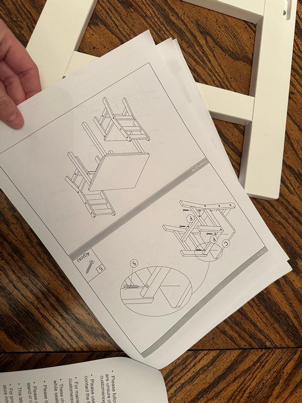 I am so disappointed. I started by putting the table together and it was a breeze. There are 3 pages of all photos for instructions which are so simple and easy to follow that I was very encouraged to start. I got the one chair together and I went to put the seat on and the nails are too short so you can’t drill it into anything. Chairs are useless without the part you sit on so unless I find some way to fix that, the whole thing is a bust. I am so disappointed because it is a nice set for my daughter and the quality of the pieces is really good but the chairs are an integral part of this set.