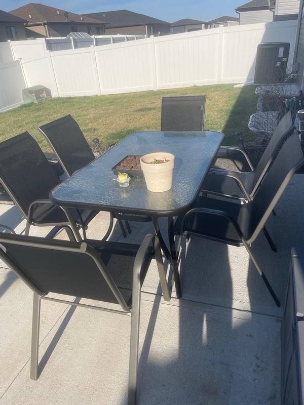 Very sturdy tempered glass top table. Decent size can comfortably fit four and tightly fit six people. Assembly wasnt easy but we managed. Looks nice and durable for outdoors
