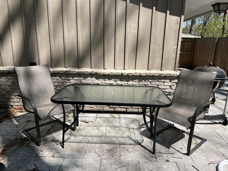 I received this product complimentary from Tory and Influenster in exchange for my honest review. This table was super easy to assemble! Took 10 minutes. It is very sturdy and love that it has an umbrella hole. It is perfect for a smaller backyard.