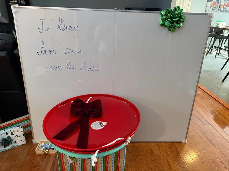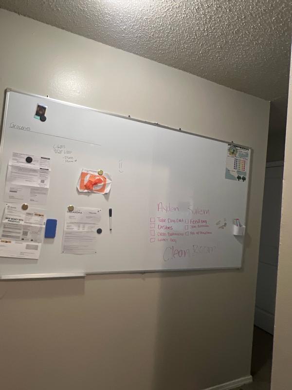 This whiteboard has been great for everyday home use. I use it for reminders, to-do lists, and meal planning, and it’s honestly made staying organized so much easier. The surface writes smoothly and erases cleanly without leaving marks behind, which I really appreciate. It feels sturdy and well made, not flimsy like some cheaper boards. I also like that it’s magnetic so I can stick notes or papers on it. Once it was mounted, it felt very secure. Overall, it’s a simple, reliable whiteboard that works really well at home. If you’re looking for something functional and easy to use, this is a solid choice