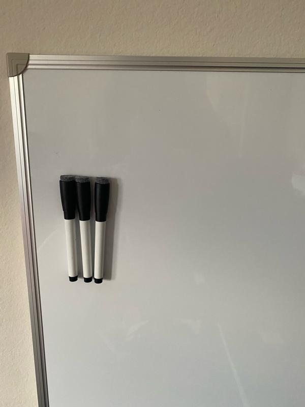 Sturdy, high-quality whiteboard with a smooth writing surface that erases cleanly without ghosting. The heavy-duty frame feels durable and well-made. Easy to mount and perfect for offices, classrooms, or home use. Great size and excellent overall quality.