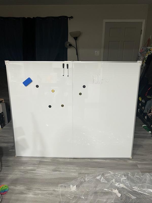 I received this product for free in exchange for my honest review. I appreciate how the whiteboard folds in half, as it is very large. It comes with magnets and some dry erase markers. Since the product is so large, you would definitely need help assembling it as it is heavy.