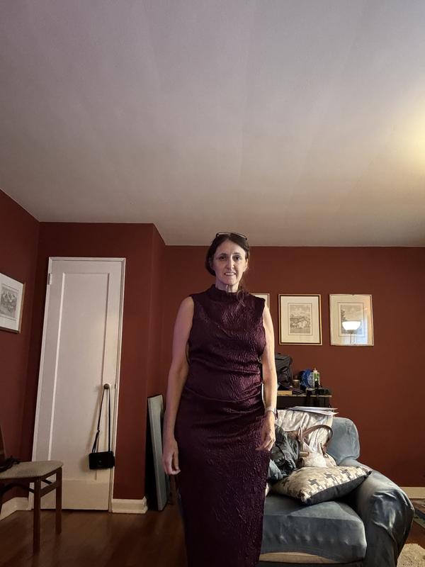 This dress is so pretty. Nice weight for fall/winter, and I love the fringe bottom. Beautiful color.