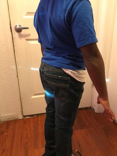 Son put the pants on for the first time and they fit him perfect being since it’s hard to find pants that fit him just right being since he is so slim and a lil tall for his age, but these pants was just right for him