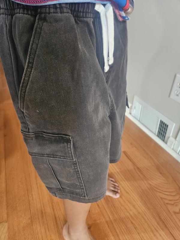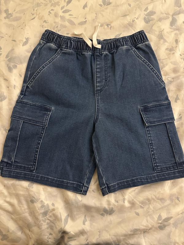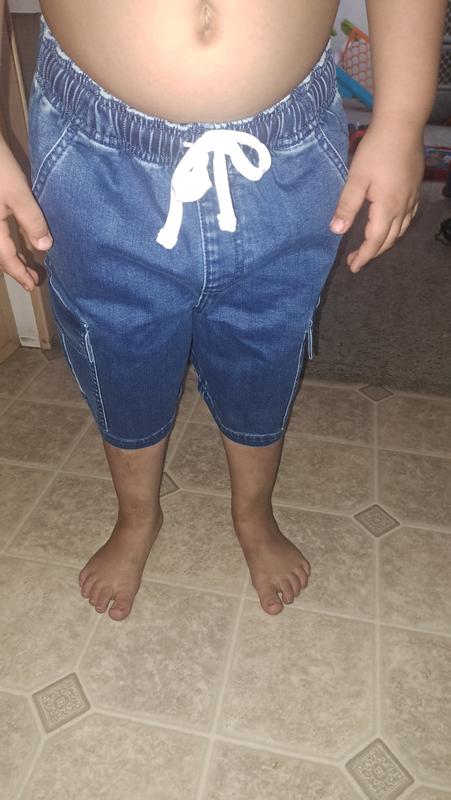 I picked out the EPIC THREADS BIG BOY DRAWSTRING DENIM SHORT, Med, cedar wash for my grandson to wear around the neighborhood on those hot summer days. As soon as I took the shorts out of the bag and felt the material thoroughly, I was impressed. The texture is very soft and stretchable, but it also feels durable as jeans are made to be. The EPIC THREADS BIG BOY DRAWSTRING DENIM SHORT, Med, cedar wash are made of cotton 69%, recycled polyester 30%, and spandex 1%. Dry cleaning is not necessary for these delicate feeling jean shorts. I simply wash them in the washing machine with cold water and dry on the delicate setting and then iron lightly if needed. The EPIC THREADS BIG BOY DRAWSTRING DENIM SHORT, Med, cedar wash provide my grandson the ability to be more active , with less restraint then traditional 100% cotton jean shorts. He can run all over the place as if he were wearing basketball shorts with no discomfort. The shorts also have a stylish casual look to them as well that makes for going to the circus, fair or anywhere on the town. My grandson likes his new shorts and will get plenty of wear out of them.