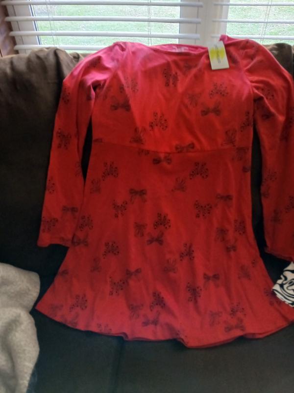 Bought this dress for my granddaughter. I liked that is long sleeve. I thought it would be a nice dress to wear for Christmas because it had bows all over it.