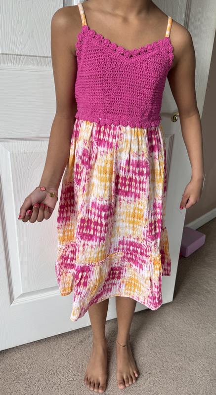 Girls Crochet Woven Tie-Dye Effect Dress, Exclusively at Macy's