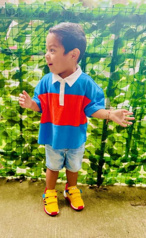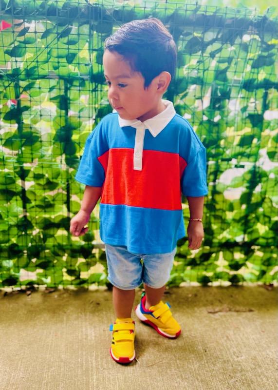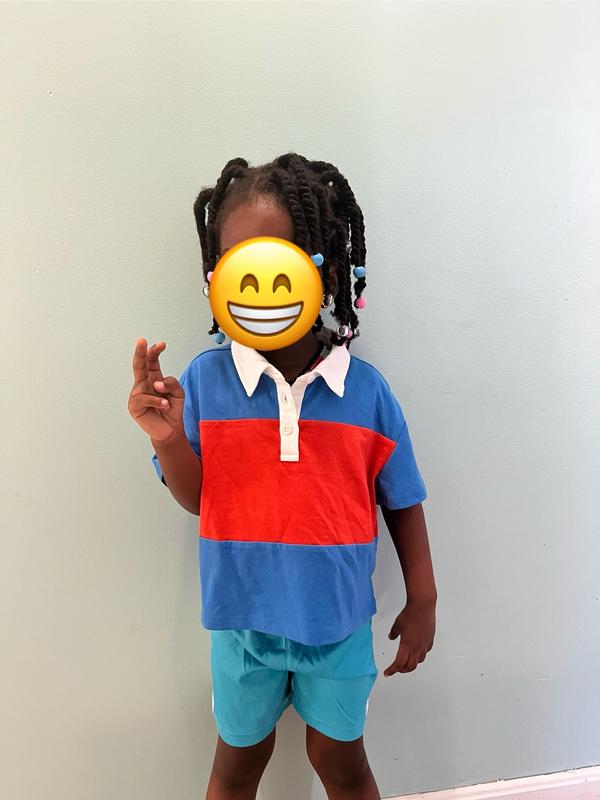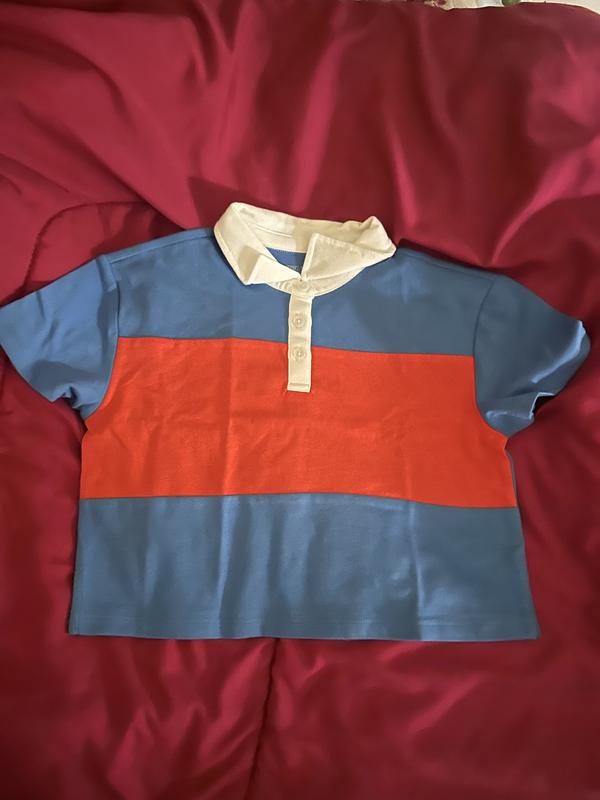 Colorful bold stripe polo for girls, I ordered size 5/6 which ended up too small for my 6 year old. It is designed to end at the midriff, the material is soft and although it looks a little big on my 3 year old, she will enjoy it for a few years.