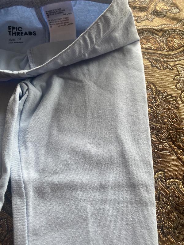 These are cute and stretchy. The periwinkle color is very pretty in person. They were a little small for my daughter but because there is enough spandex in the composition, they stretched and she was comfortable. She is tall, so they hit more at Capri length.