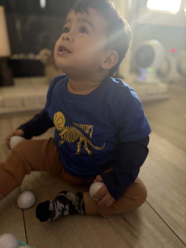 It is a really good shirt for toddlers. The dino print is clear and did not get spoilt even after washing which sometimes tends to happen with prints. The sizing is perfect and had no issues. The color combination looked cute on our toddler.