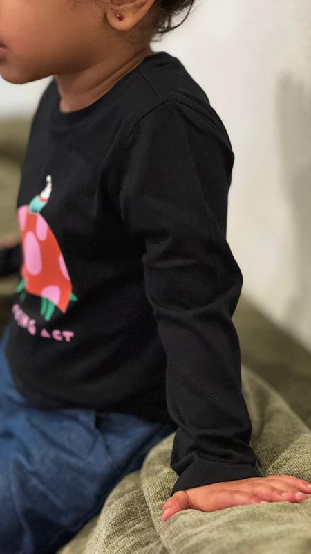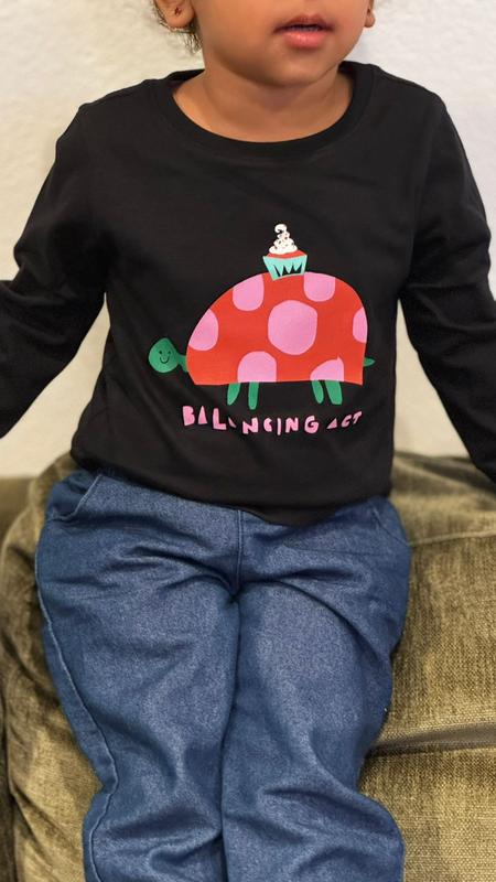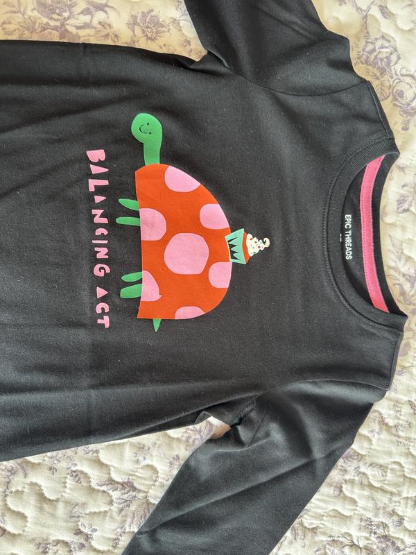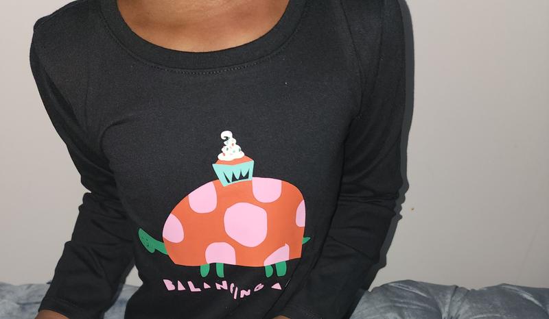 This super soft cotton tee is one of the most comfortable tops that my daughter now has. She was so excited to wear it for the first time and thought that the graphic was really cute! It runs on the large side so I would suggest sizing down. (I wish they had this super soft tee in adult size.)